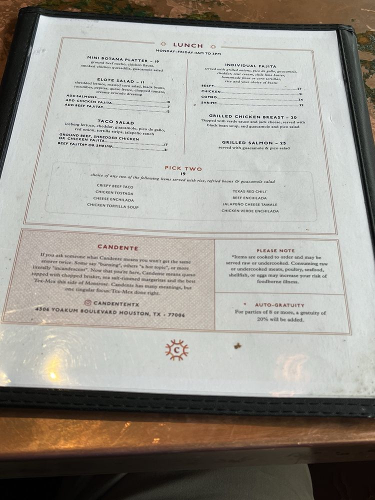 Located in Houston, Texas, Candente is a Tex-Mex restaurant that offers a wide array of amenities. From delivery and takeout options to wheelchair accessibility and outdoor seating, Candente has something for everyone. The restaurant is classified as casual yet classy, with a lively atmosphere that is perfect for groups and dinner outings. With options for vegetarian diners and a variety of payment methods accepted, including cryptocurrency, Candente strives to cater to all its customers. The restaurant boasts a full bar with happy hour specials and even offers catering services. The menu features traditional Tex-Mex dishes prepared with a modern twist, creating a unique dining experience that is sure to impress. Overall, Candente provides a welcoming and inclusive environment with delicious food and excellent service.